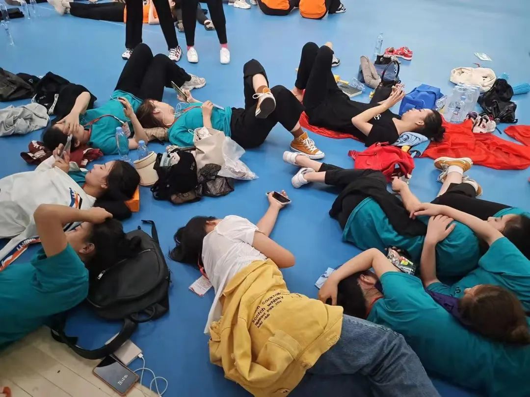 因现场座椅有限,川影参演的同学们在排练厅躺下休息。