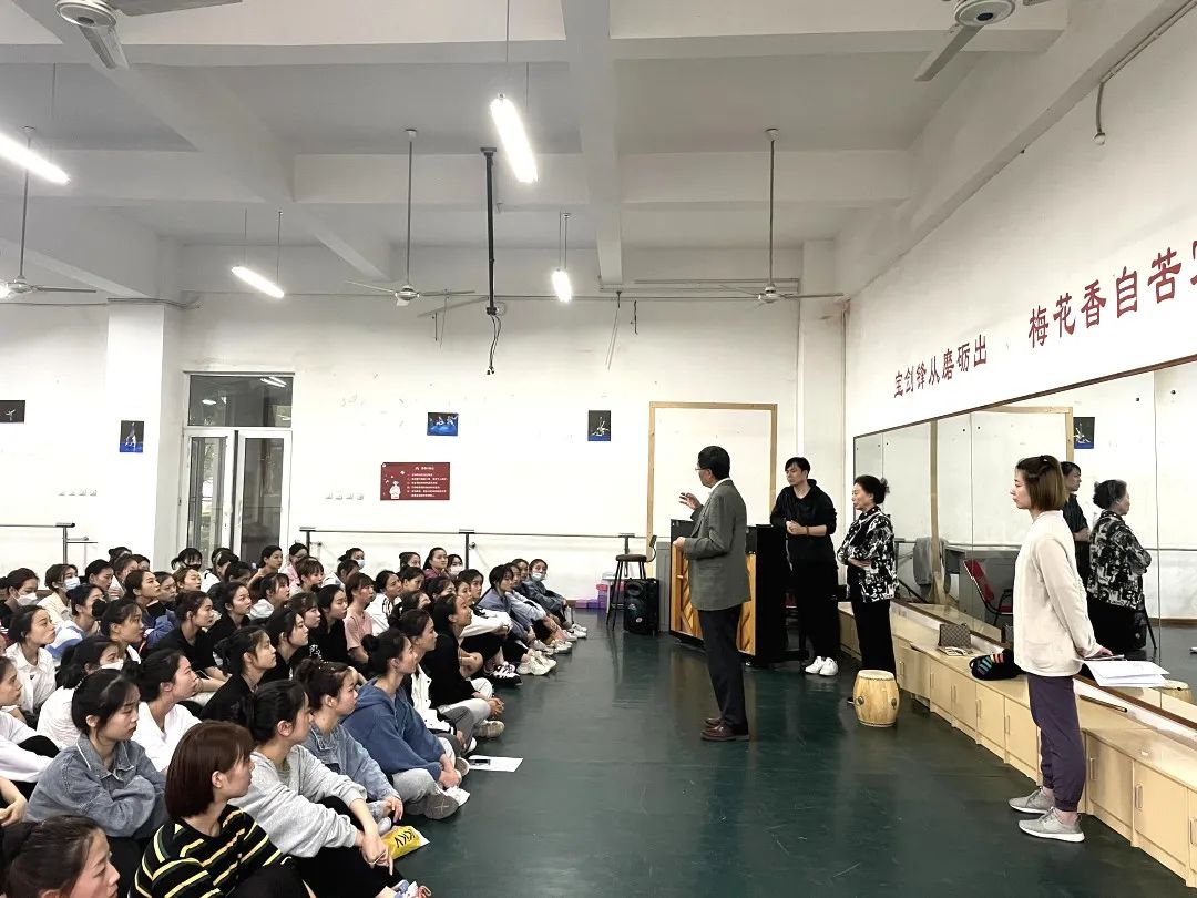 川影校长罗共和前往排练现场关心同学们排练情况,并给予指导。