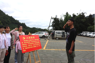 师生党员们在邛崃红军长征博物馆重温入党誓词