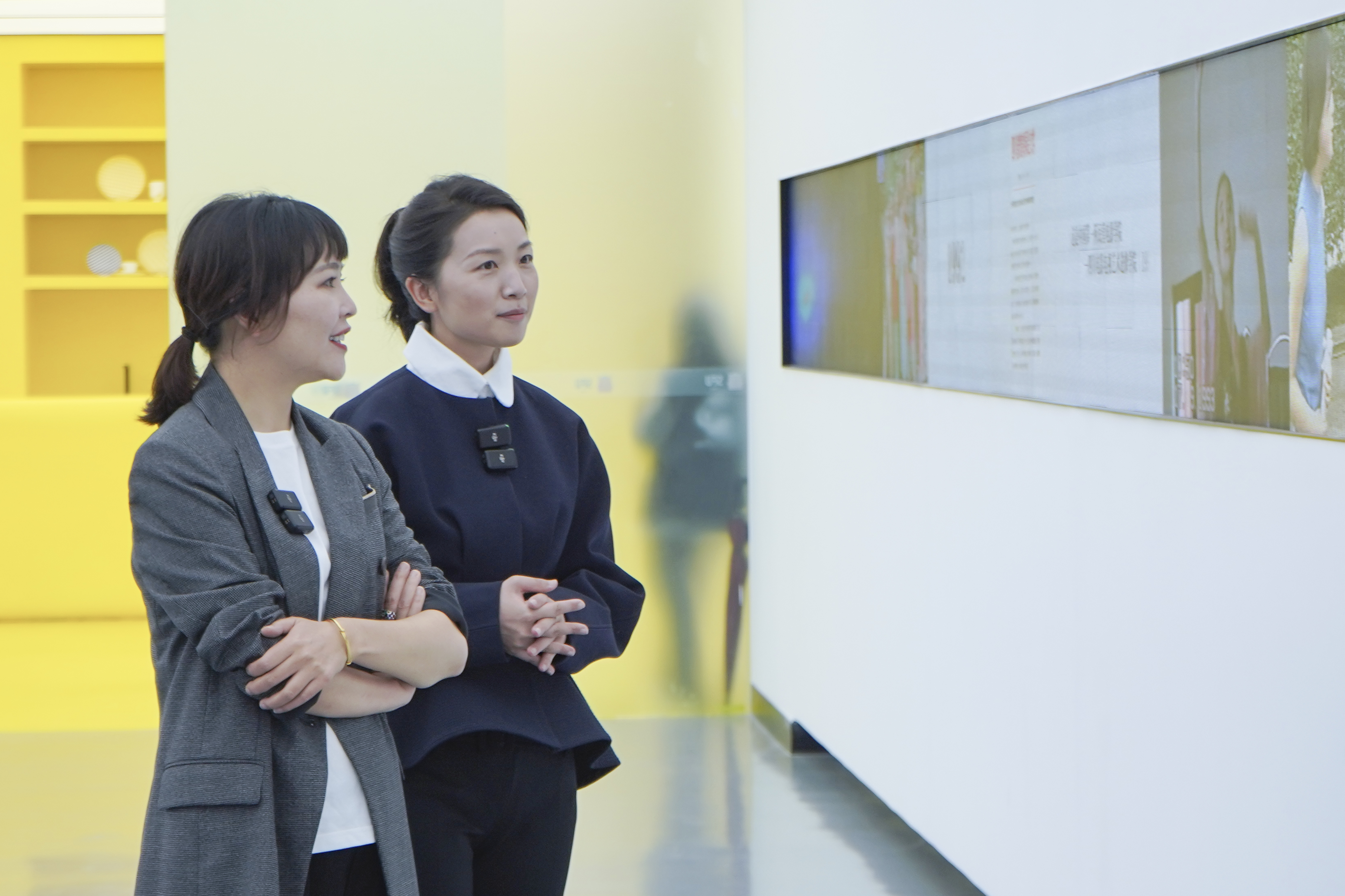 四川电影电视学院党委副书记、副校长罗思教授与1998级校友宁远漫步在川影艺术中心(校史馆)