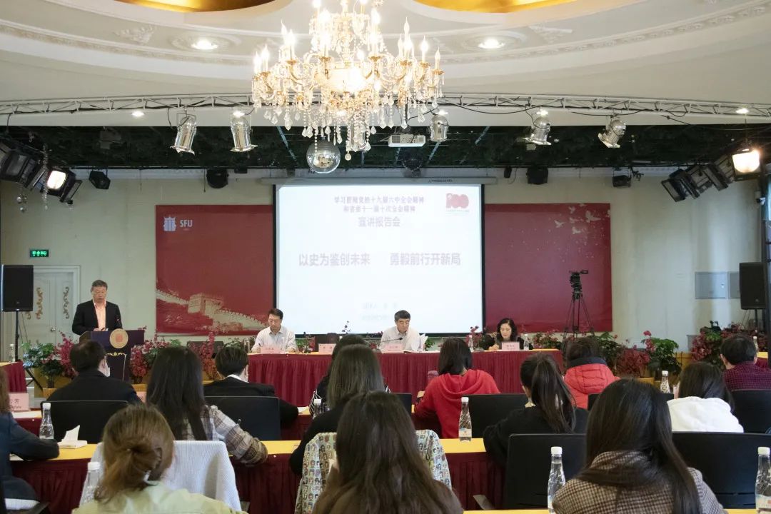 李健教授结合自身所学所思,用通俗的语言、鲜活的故事,系统全面地解读全会精神,为大家带来了一场精彩的宣讲。大家纷纷表示要从党的百年奋斗史中汲取智慧力量,立足本职工作、强化使命担当,以实际行动推动党的十九届六中全会精神在川影落地生根、开花结果。
