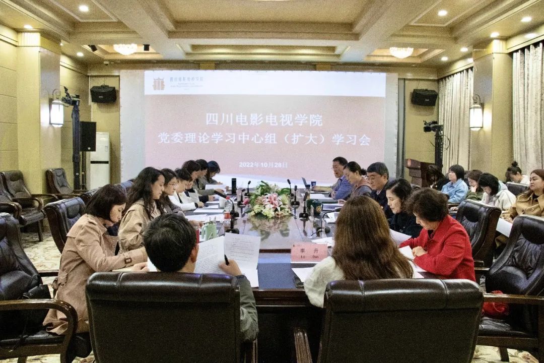 为深入学习宣传贯彻党的二十大精神,切实把思想和行动统一到党的二十大精神上来,10月28日,四川电影电视学院党委在金牛校区贡院五会议室召开理论学习中心组(扩大)学习会。