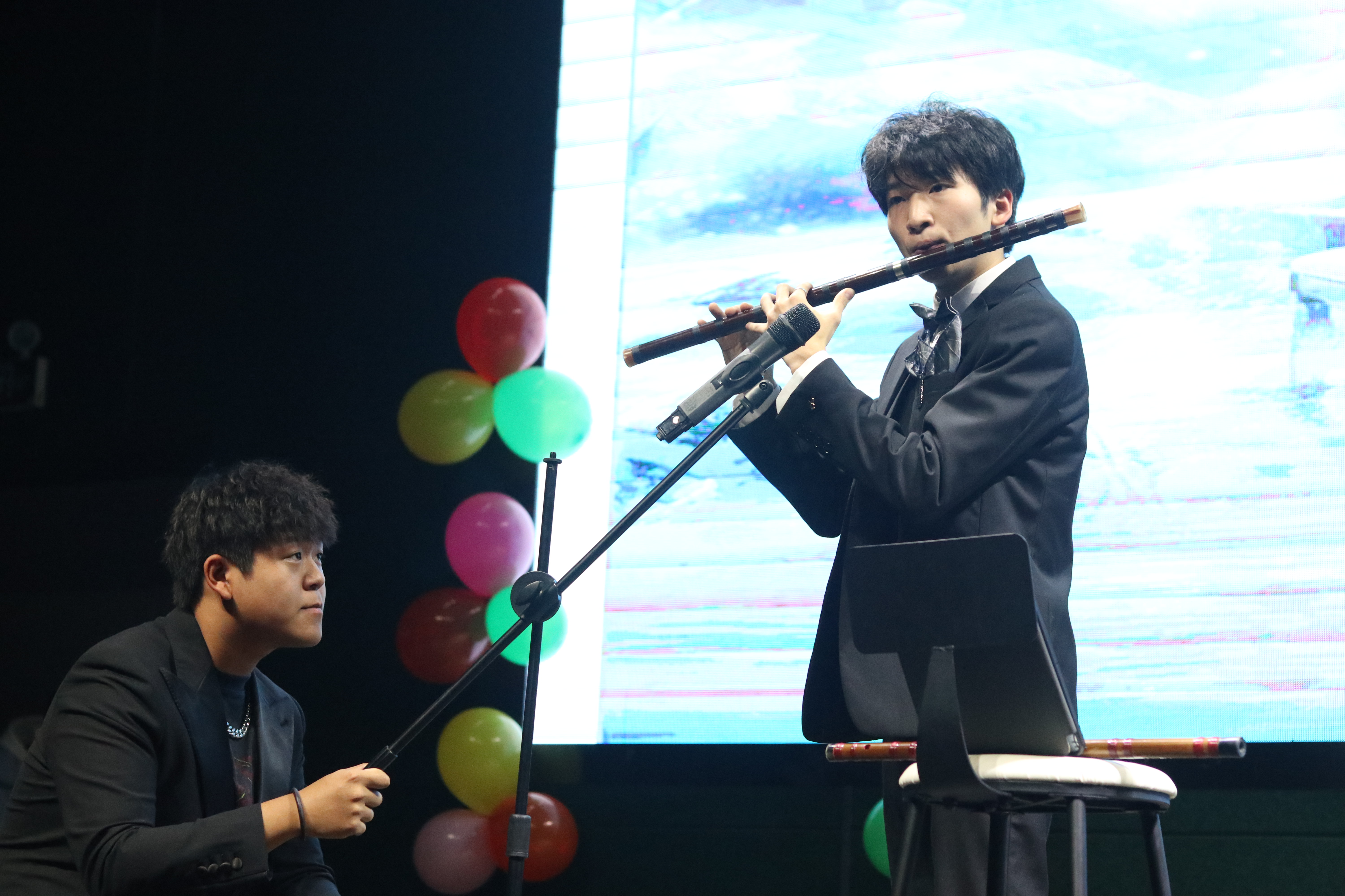 热闹非凡的晚会上,多才多艺的学子们纷纷登台,将各自的才华展现得淋漓尽致,为观众编织了一场视觉与听觉的盛宴。晚会的伊始,便由陈阳伶与罗叶萱同学携手,以一曲情景歌舞《金风玉露》瞬间点燃了现场的气氛,为晚会奠定了活力四射的基调;紧接着,贺正强同学,以一管竹笛,吹奏出悠扬而深情的旋律,将晚会现场变成了一片诗意的海洋;正当大家沉浸在这份宁静与美好之中时,贺正强与陈利明合作的相声表演《我心永恒》适时登场,如同一股清新的风,瞬间吹散了先前的静谧,带来了阵阵欢声笑语。他们幽默风趣的表演,不仅展现了相声艺术的独特魅力,也让现场的气氛变得更加热烈而温馨,每一个笑点都精准地触动了观众的心弦。此外,晚会还迎来了一抹独特的文化风景——张佳熙同学带来的书法展示,不仅展示了中国汉字的博大精深,也让在场的每一个人深刻感受到了传统文化的独特韵味与无穷魅力。