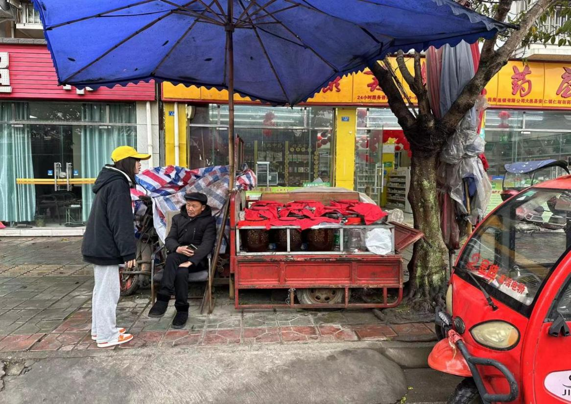 9点40分,志愿者同学正询问老人平时驾驶三轮汽车的情况,并向老人讲述驾驶三轮汽车所需要的相关安全知识。