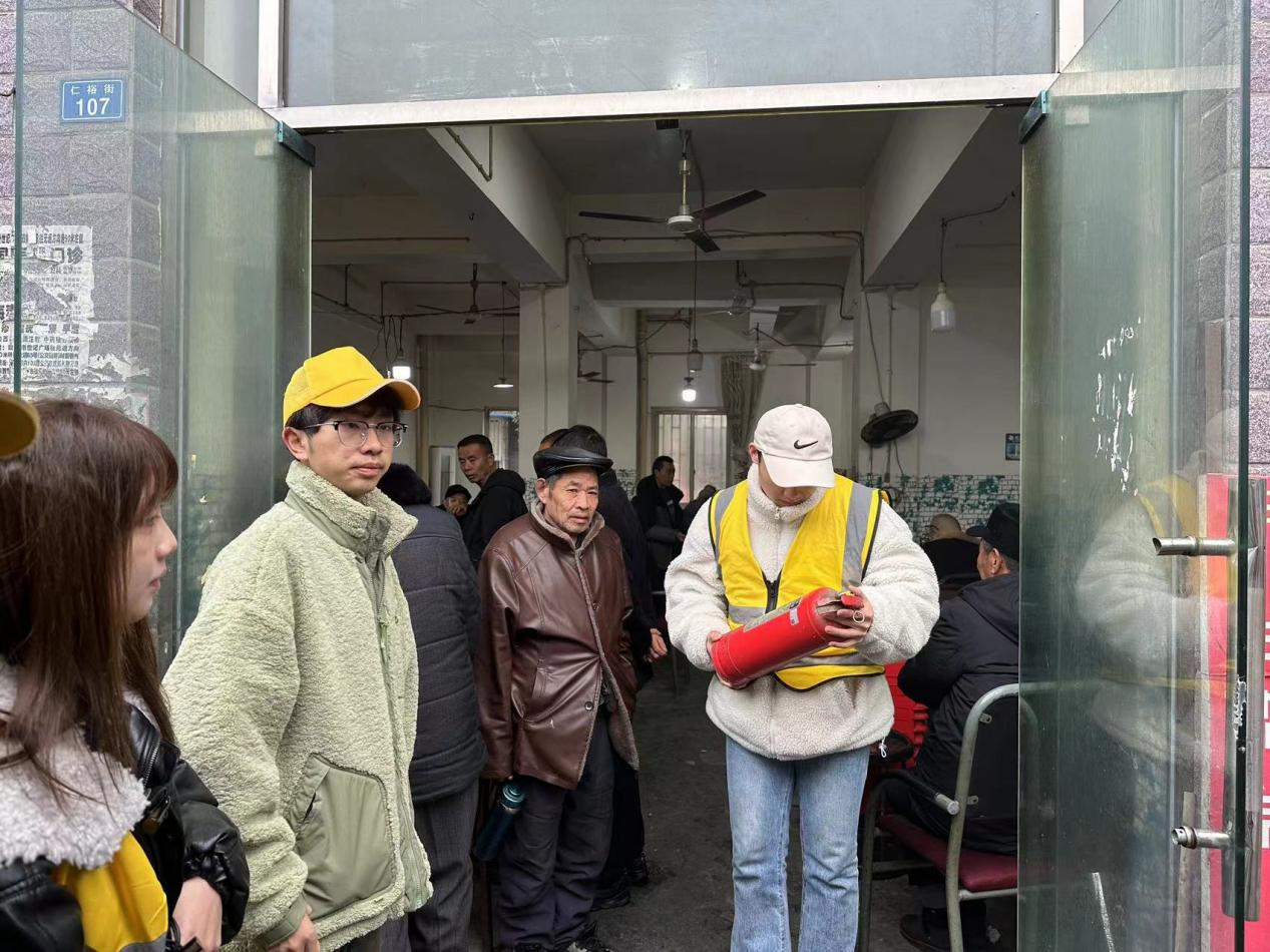 10点26分,志愿者同学前往社区茶馆帮助居民老人检查灭火器情况,确保灭火器在保质期内,能够在关键时刻正常使用。