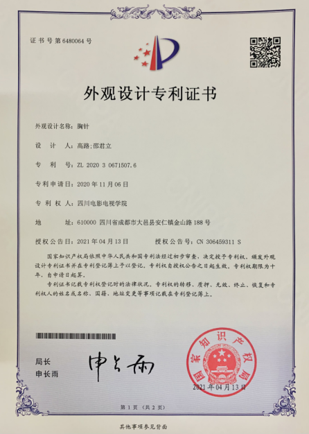 近日,由管理学院高路老师申请的国家外观设计专利获得通过。外观专利号:ZL202030671507.6专利证书设计理念:基于宋代诗人王珪佳作“池面风来波潋潋,波间露下叶田田。谁於水上张青盖,罩却红妆唱采莲。”有感,以绿松石比为“雨露”、红铜镀色工艺金属勾勒出“荷叶”为方,配以银色金属成型的茎杆,设计出的一款写实主...