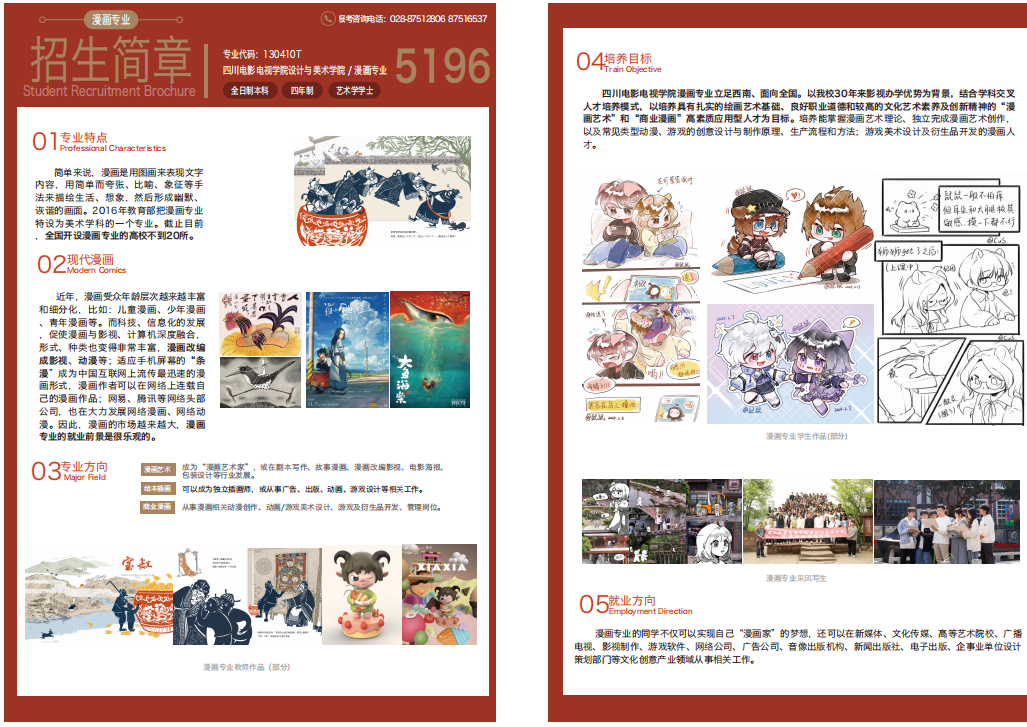 漫 画本专业立足西南、面向全国,以我校30年来影视办学优势为背景,培养具有扎实的美术造型基础、深厚的人文艺术素养、富有艺术创新精神和实践能力、适应当今社会电影事业发展需要、适应漫画艺术和创意文化产业发展需求的高素质应用型人才为目的。一、培养目标漫画专业以“漫画艺术”和“商业漫画”人才培...