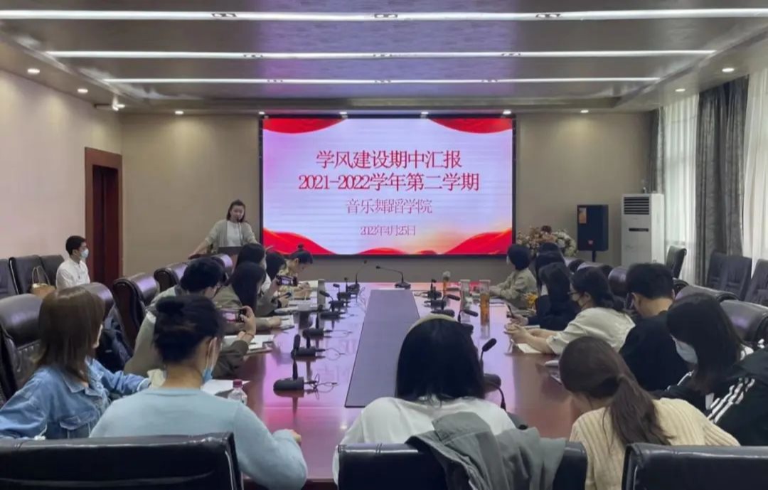 四川电影电视学院音乐舞蹈学院2021—2022学年第二学期学风建设期中汇报于4月25日及5月9日安仁校区贡院二会议室举行。音乐舞蹈学院党委副书记陈一新老师以及音乐舞蹈学院全体辅导员到场参加。