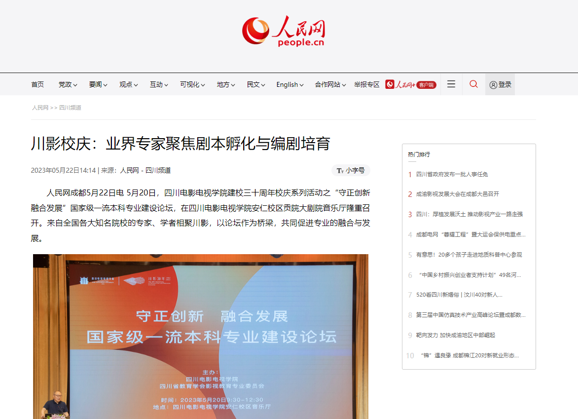 5月20日,四川电影电视学院建校三十周年校庆系列活动之“守正创新 融合发展”国家级一流本科专业建设论坛,在四川电影电视学院安仁校区贡院大剧院音乐厅隆重召开。