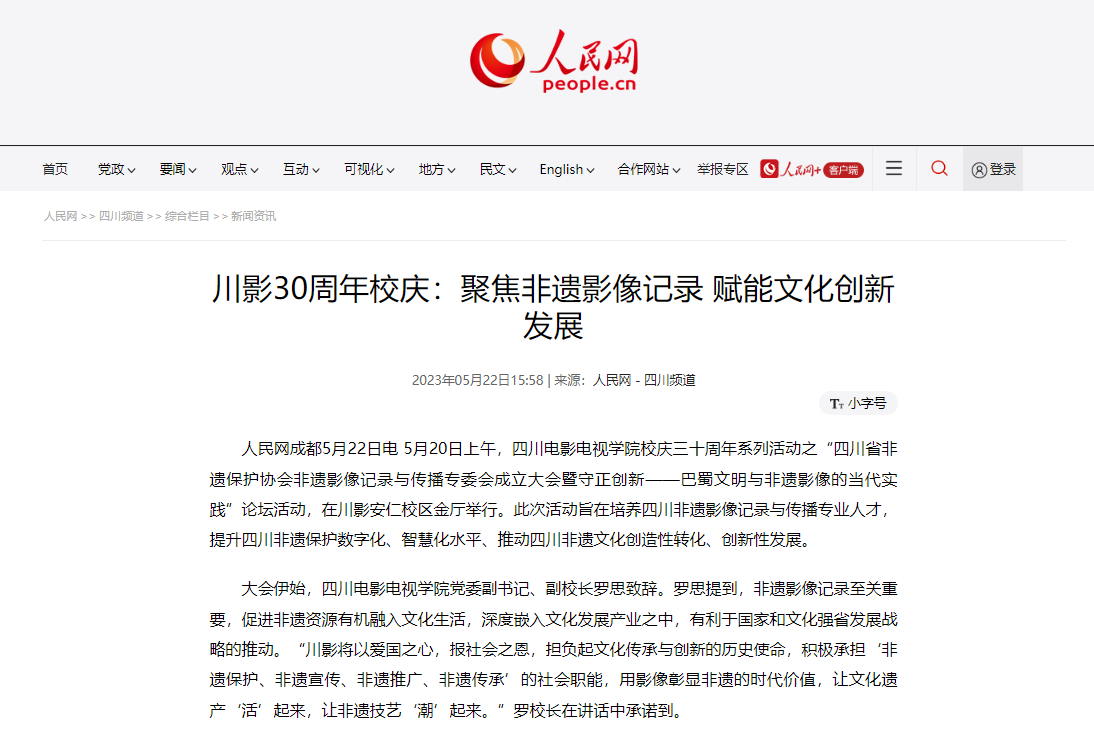 近日,由中国广播电视社会组织联合会、人民网主办的成渝影视发展大会在四川省成都市大邑县四川电影电视学院安仁校区(四川影视文创城)举行。