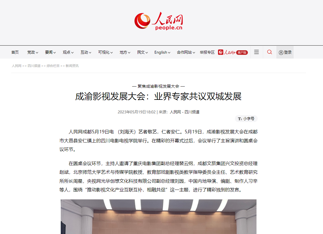 5月19日,成渝影视发展大会在成都市大邑县四川电影电视学院安仁校区举行。